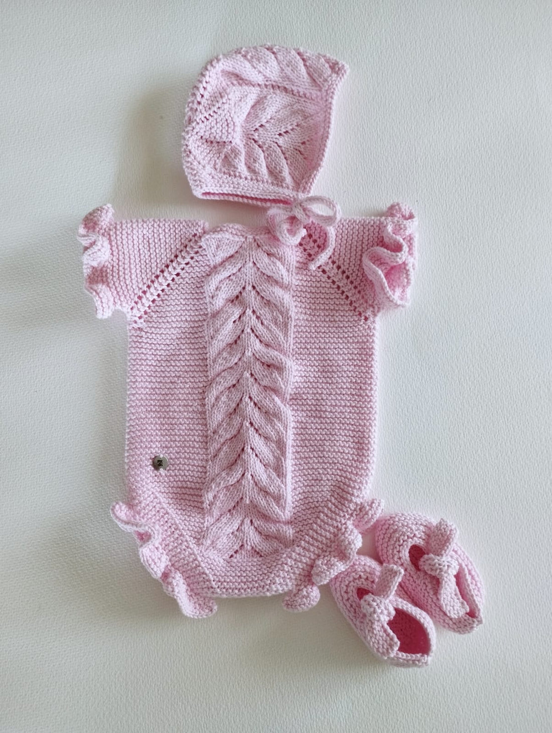 Este conjunto de punto artesanal para bebé, está tejido a mano con mucho mimo es...