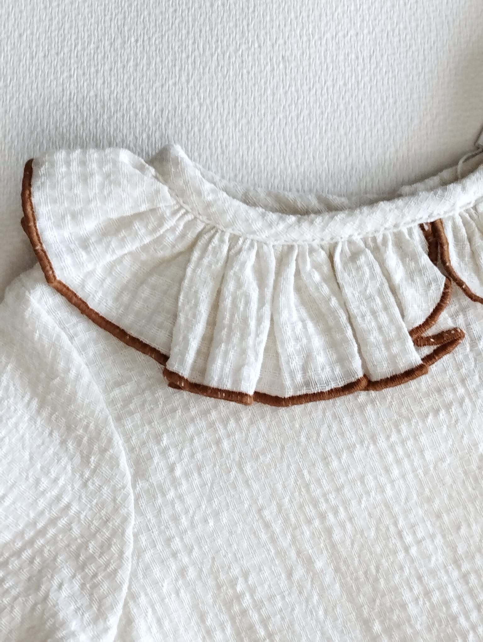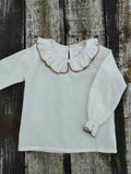 Blusa de niña en color marfil de Boetiekids confeccionada en tejido suave y delicado para aportar comodidad durante todo el día.