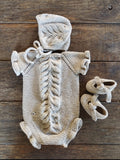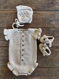 Este conjunto de punto artesanal para bebé, está tejido a mano con mucho mimo es una de nuestra joyitas.