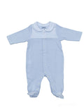 Pelele enterizo en vichy azul celeste con pequeño canesú en color blanco en algodón 100% con abertura delantera y cuello bebé, de la marca Babidú.
