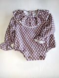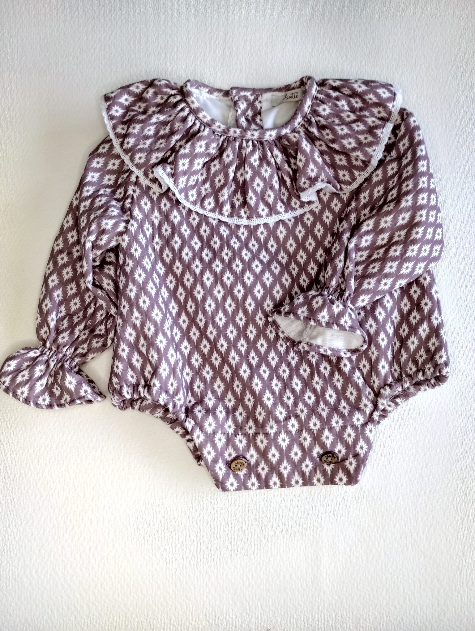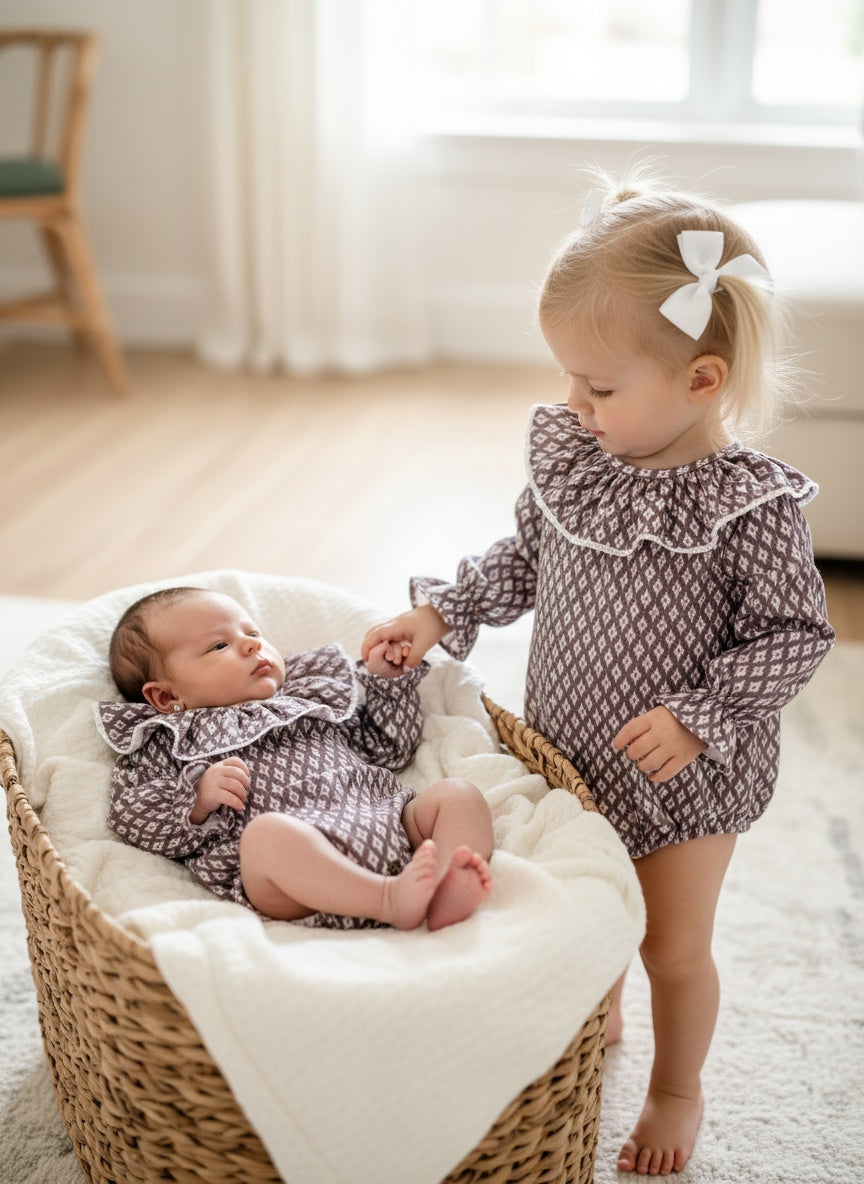 El pelele rombos Akan de Boetiekids es puro encanto: su diseño de rombos, las mangas largas fruncidas y el algodón 100% lo convierten en uno de los favoritos de la temporada.